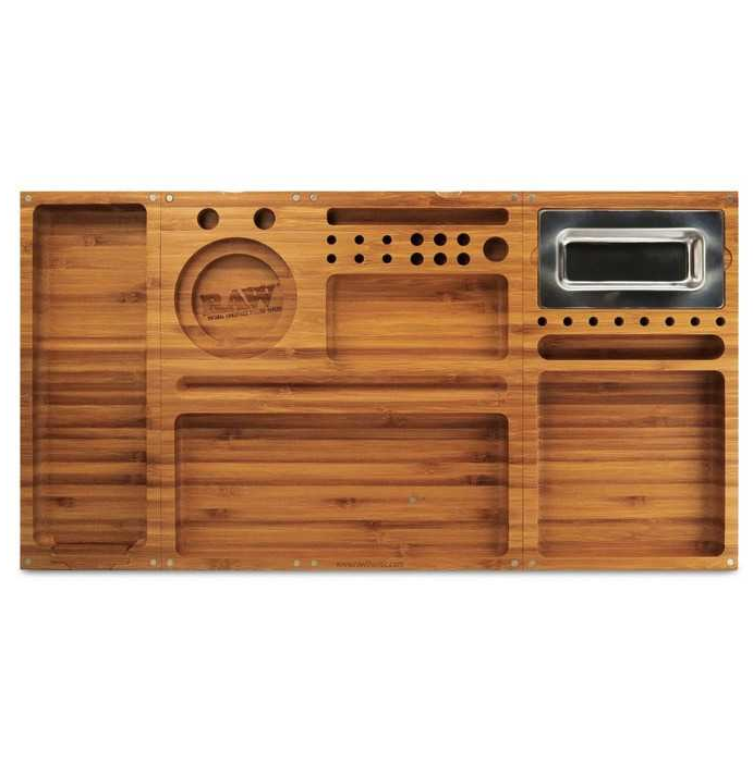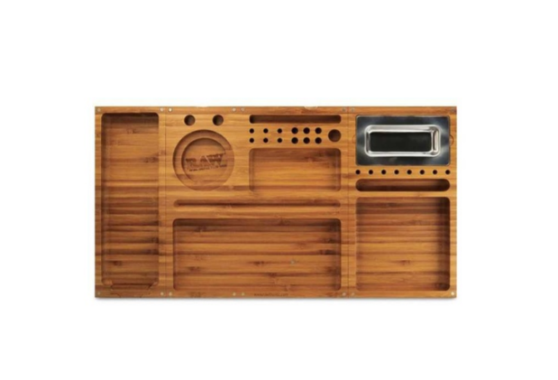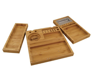 Con 3 piezas separadas, esta bandeja de bambú Raw está fabricada magistralmente. Con ella tienes todo al alcance de tu mano. Con cierres magnéticos, esta bandeja se puede utilizar como una gran bandeja para todos o por separado. Entre otras características, esta bandeja tiene soportes para tus conos, un cenicero de metal desmontable, un sitio para el papel de liar, los filtros y muchos más espacios para todo lo que necesitas. El artículo para el fumador perfecto.